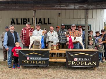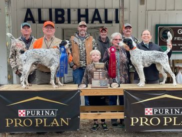 8XCH, 3XNat'l CH Ponderosa Mac is declared winner of the Grand National Grouse Championship for owner Steve Snyder. "Mac" has won the most cover dog championships in history.