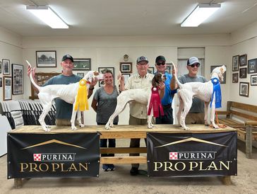 Meredith Grade Penny, owned by Dennis Keysor wins the Purina, Thomas Flanagan and Michigan Cover Dog Derby of the Year Awards